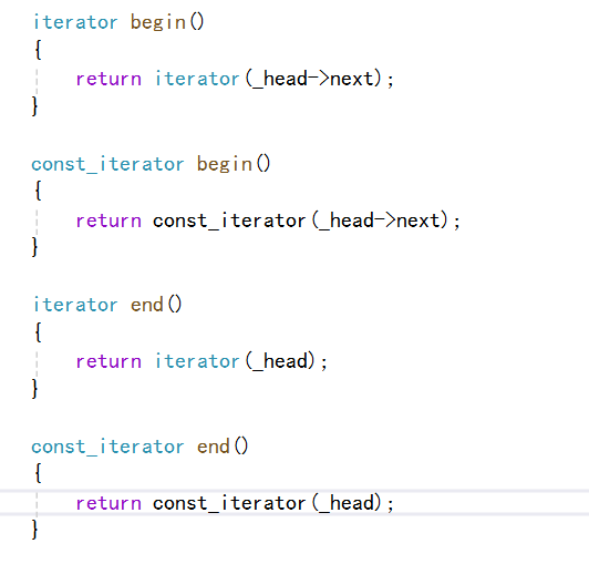 这两个就很简单了,就是其有两个重载,一个是普通的迭代器,一个是const对象的迭代器: