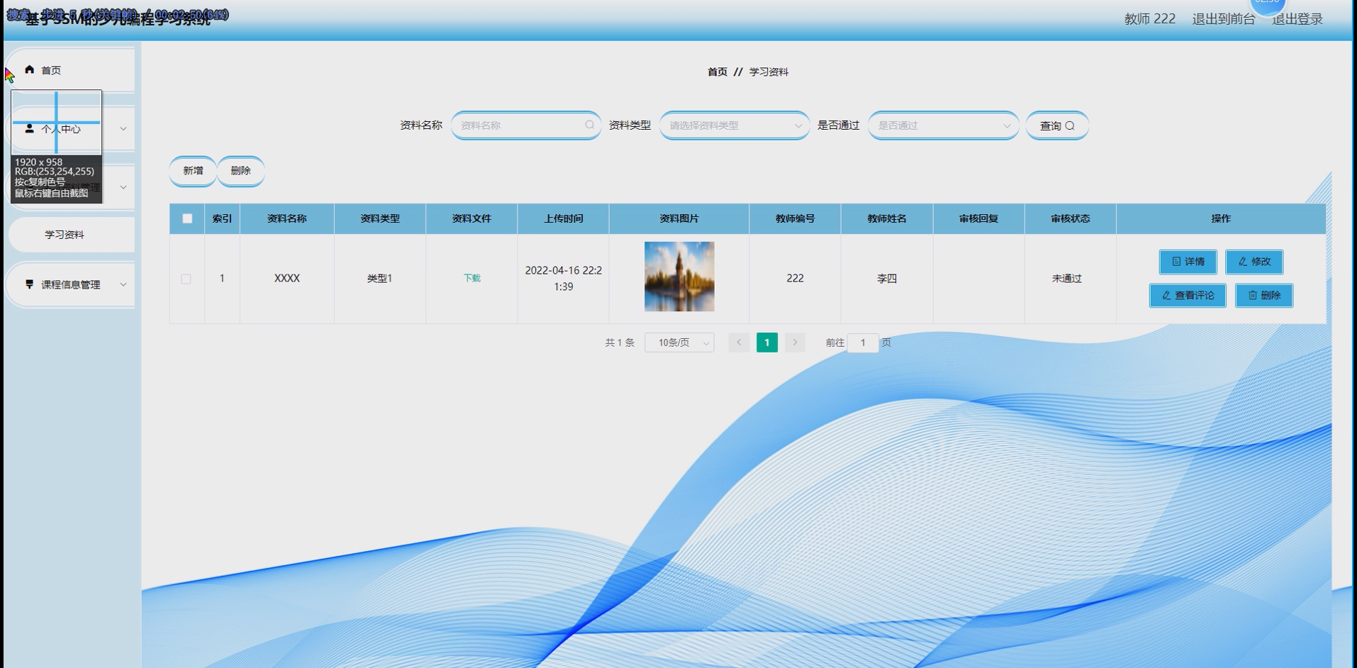 - 资料查询:用户可通过关键词、资料类型等条件查询学习资料。