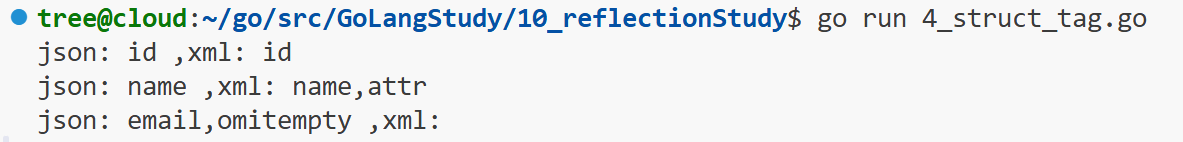fmt.Println("json:", tagJson, ",xml:", tagXml)