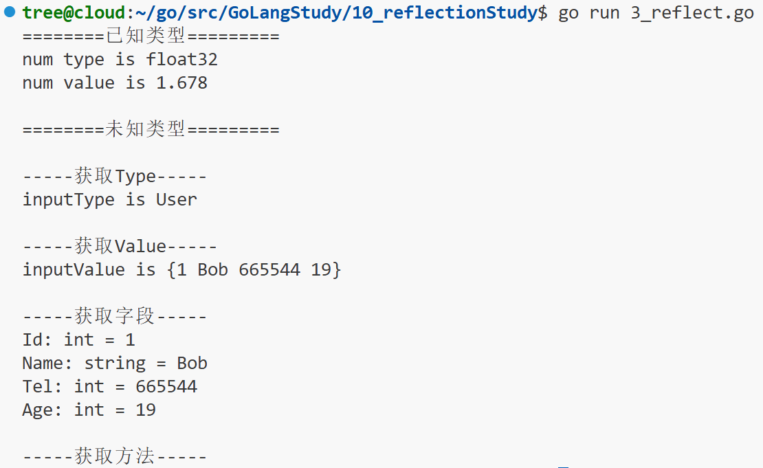 // 注意:私有字段(小写字母开头)不能通过反射的 Interface() 方法获取值。