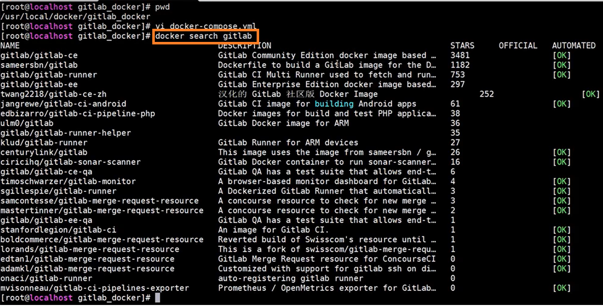 查看 docker search gitlab 镜像