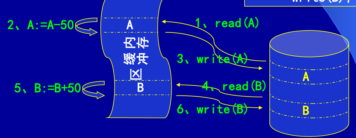 举例:银行数据库中有一转帐事务Ti,从帐号A转一笔款(¥50) 到帐号B。