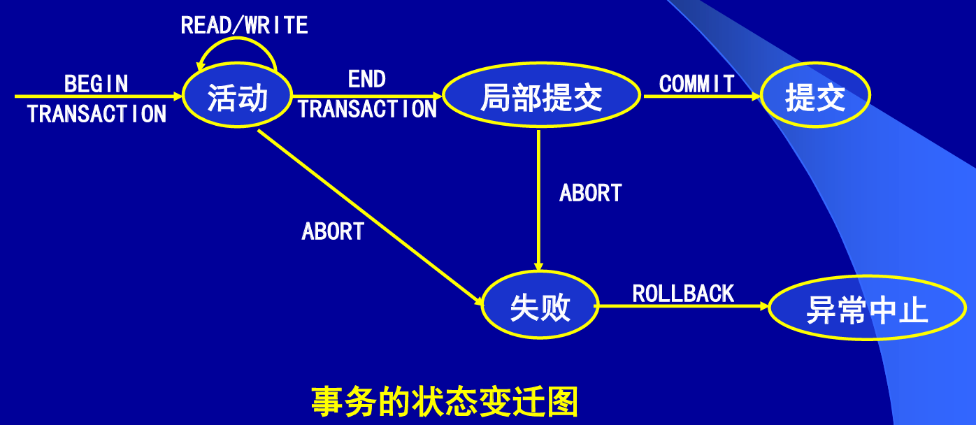 在局部提交状态,虽然事务的 语句执行结束,但对数据库的 修改可能还没有写到数据库。 此时,如果系统出现故障,事 务将进入"失败"状态。