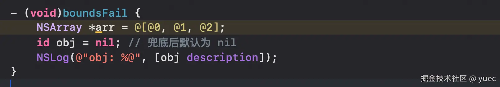 Ekko 兜底 objectAtIndex: 后,上述代码在异常发生后,执行逻辑上等价于: