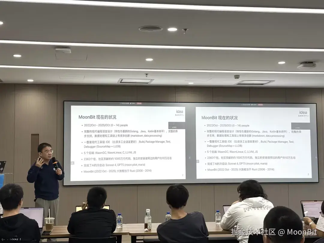 10 月 25 日下午,「AI 时代下的基础软件」MoonBit 技术沙龙在深圳圆满举办。来自 MoonBit 团队的多位核心工程师,与粤港澳大湾区的开发者们共同探讨了 AI 与基础软件的结合、MoonBit 语言的最新进展 以及 AI 驱动下的未来编程方式。