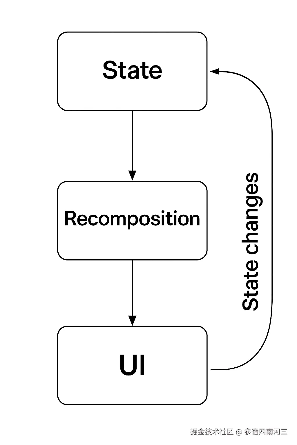 在 Jetpack Compose 中,更推荐无状态 (stateless) 的 Compose 函数。让 UI 组件专注于展示逻辑,而状态管理交给上层组件处理。