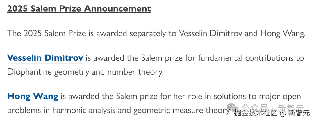 今天,34 岁中国数学家王虹,拿下了 2025 Salem Prize(塞勒姆奖)。