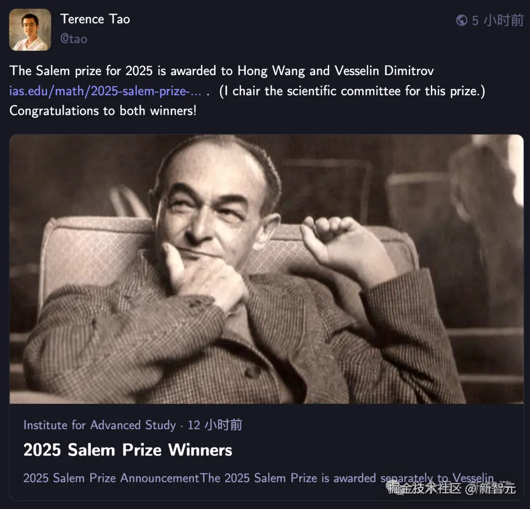 「【新智元导读】刚刚,中国数学家王虹接连斩获两项世界级数学大奖------塞勒姆奖和 ICCM 数学奖金奖,陶哲轩亲自送上祝贺。」