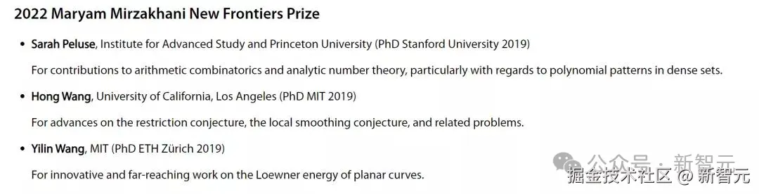 这个奖项专门表彰过去两年内获得博士学位的杰出女性数学家。