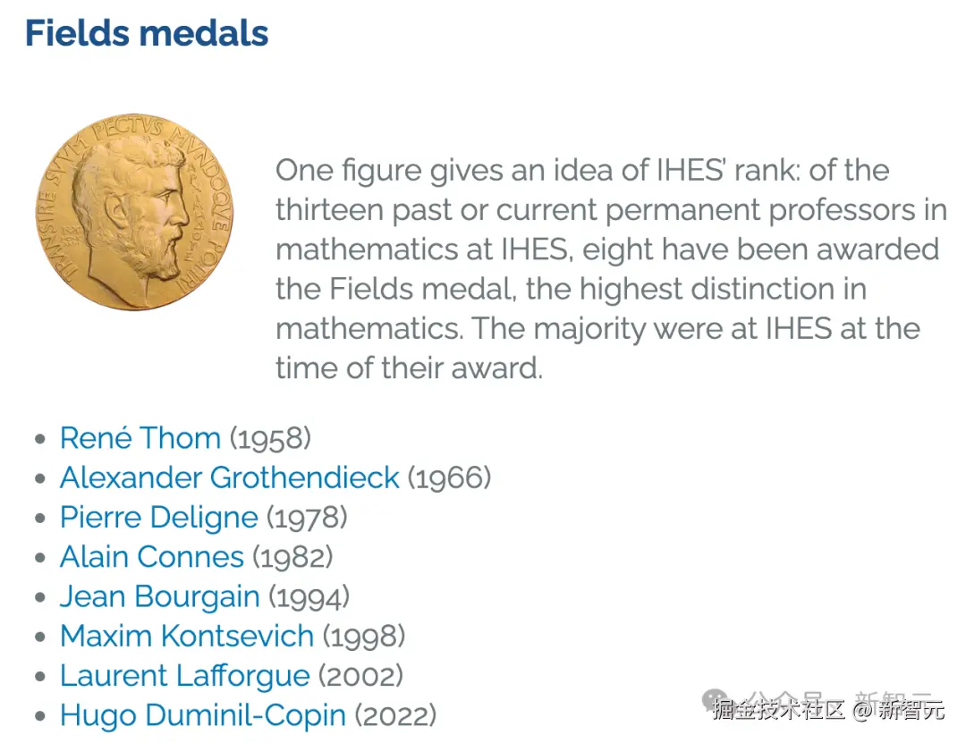 历史上,自 1958 年成立后,IHÉS 数学领域终身教授一共 12 人,其中 8 人都拿下了菲尔兹奖。