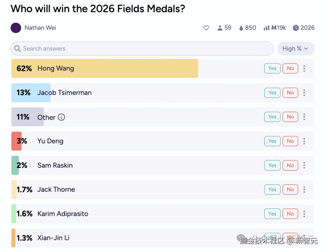 此前,王虹一度登上 2026 菲尔兹奖得主赔率榜首