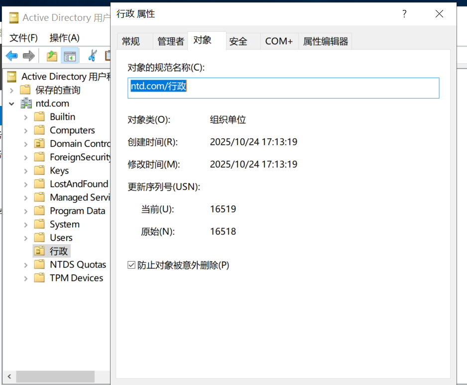 如果创建OU的时候,勾选了 【防止容器被意外删除】