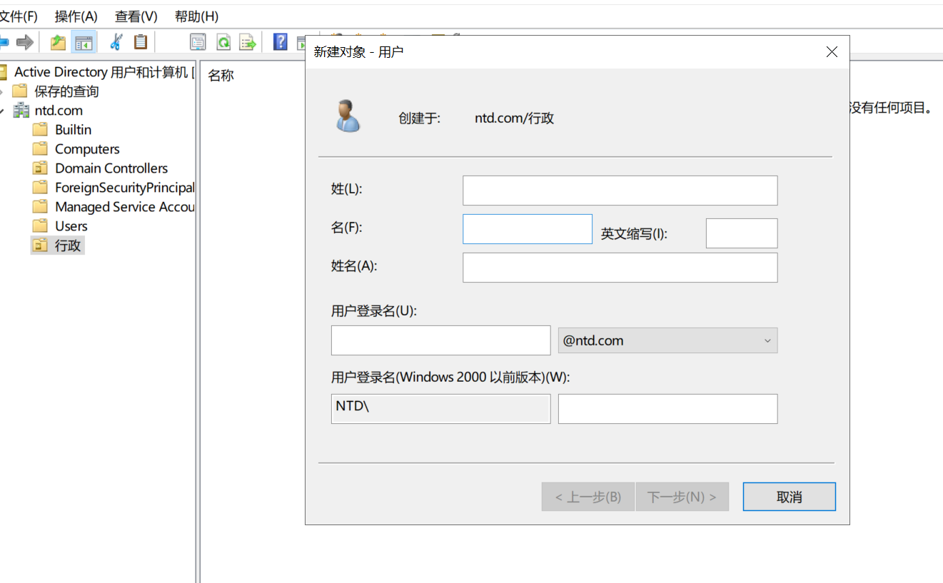 现在已经没有 用户和用户组管理了,变成在活动目录里面了