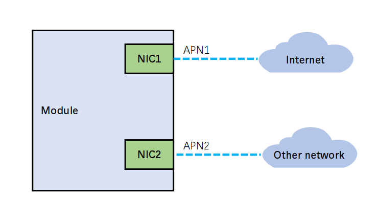 因此,当用户需要他们的产品能在连接公共网络(Internet)的同时,还需要能接入一些专用网络时,就需要使用到多路蜂窝无线网卡。此时需要给不同的网卡配置不同的APN,并激活这些网卡,即可实现用户需求。