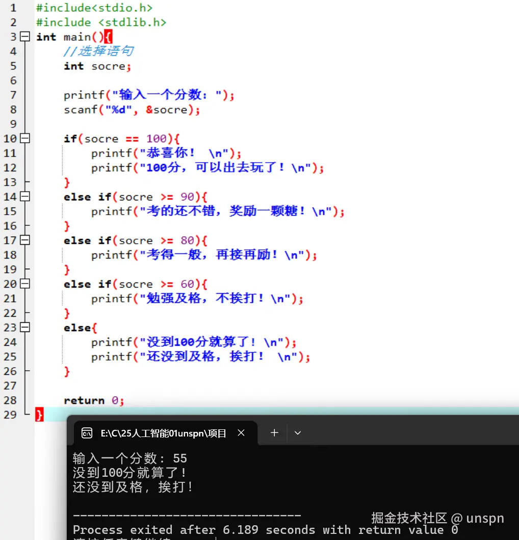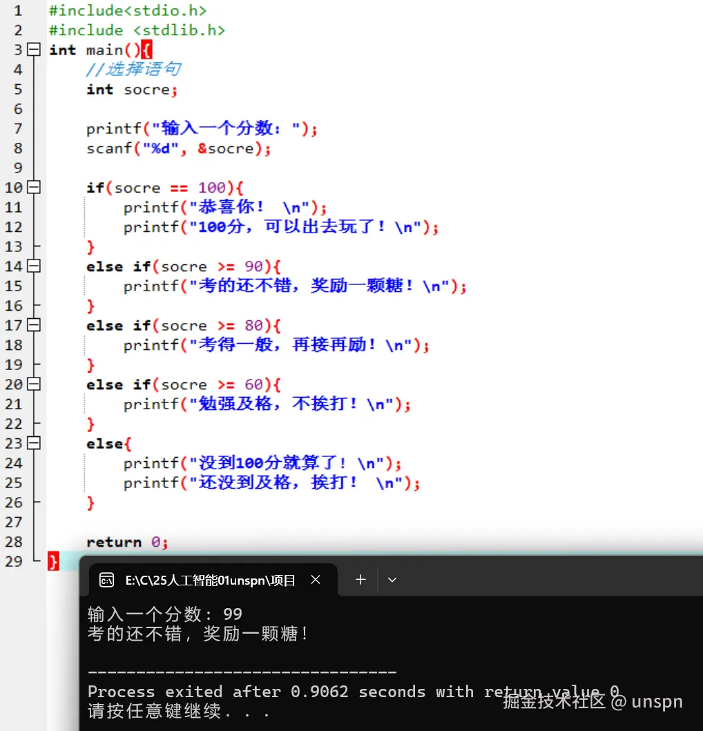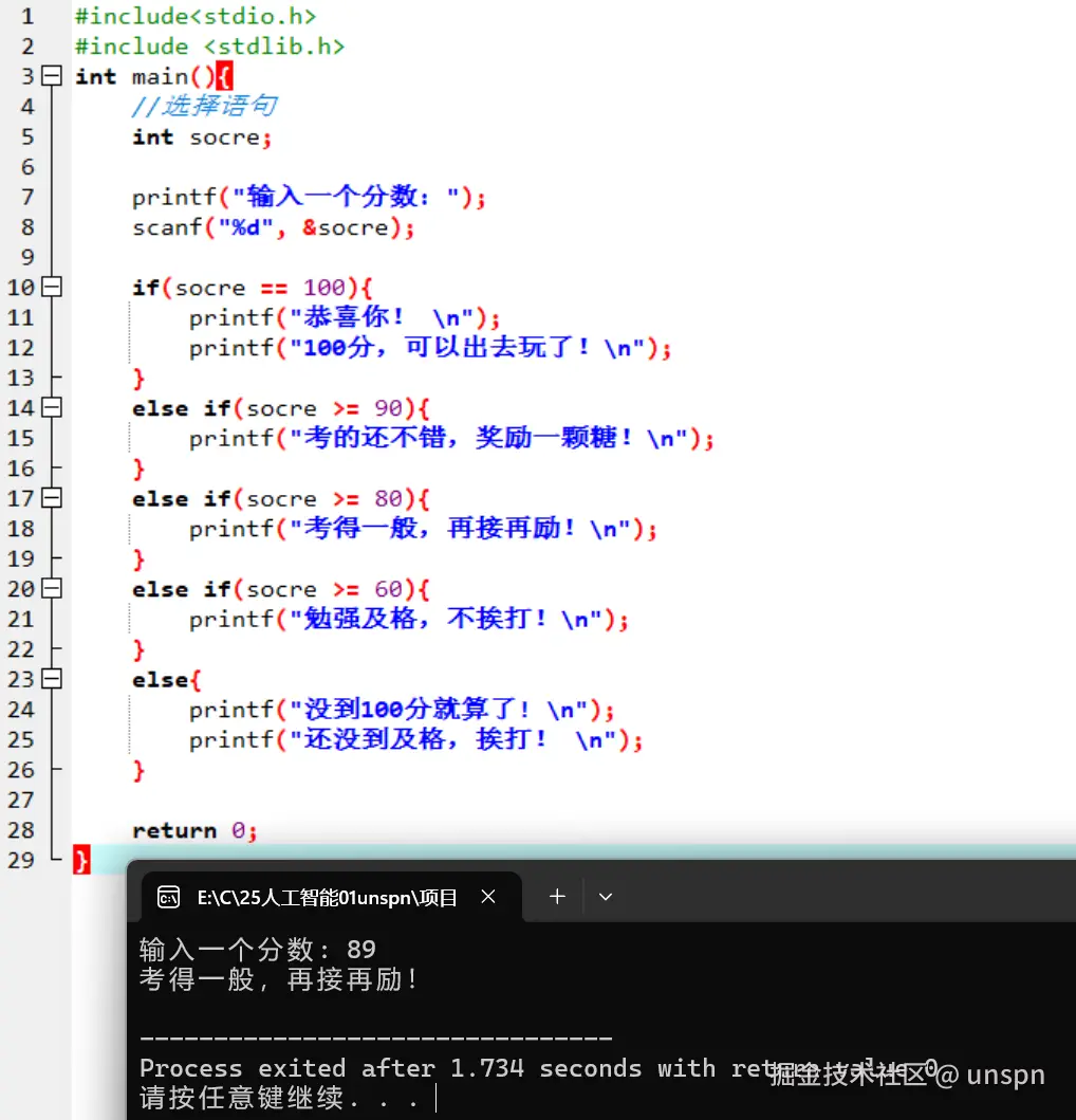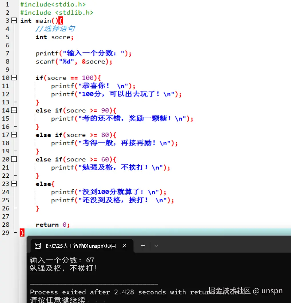 else if可用于跟在if后面再次嵌套新的要求,例如分数。