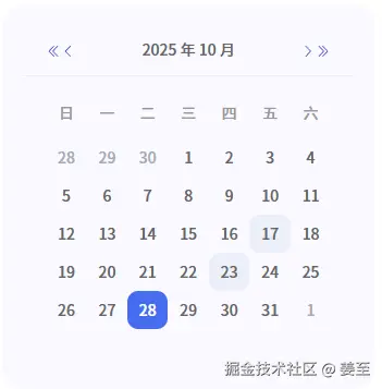 vue3页面已实现,可直接拿来用,背景需要自定义,这里把日历背景色设为透明了