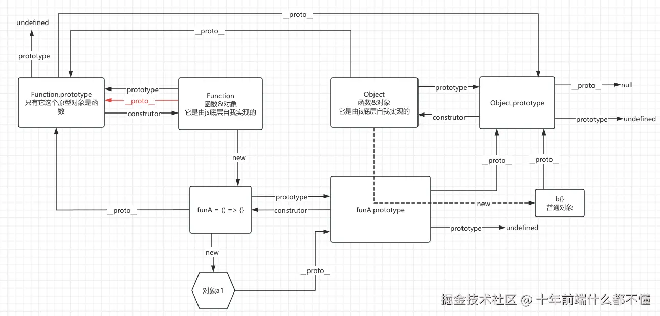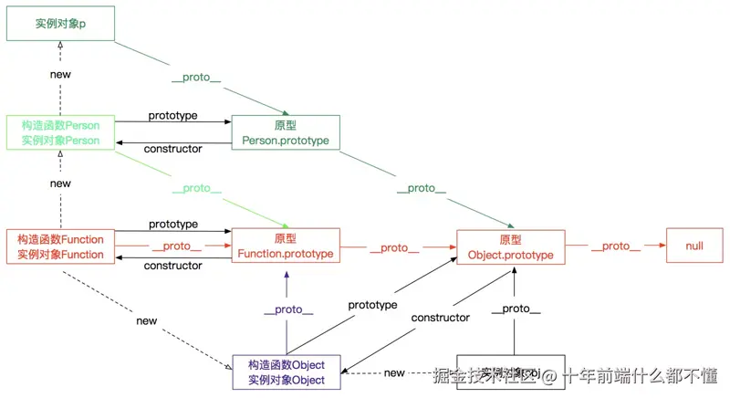 原型链的基础都是从上图延展的,下面再来一张完整的关系图: