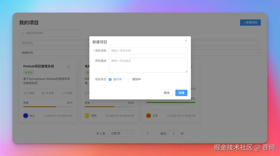 这是一个基于 API 文档利用 JoyCode 生成的项目管理系统,全程我唯一要做的是把 API 丢给 JoyCode,然后让他规划任务,按照指定的规约进行编程。