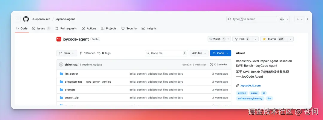 看了下,这是京东开源的 joycode-agent,目前在 SWE-Bench Verified 基准测试中凭借 74.6% 的高通过率位居榜单全球 Top3。