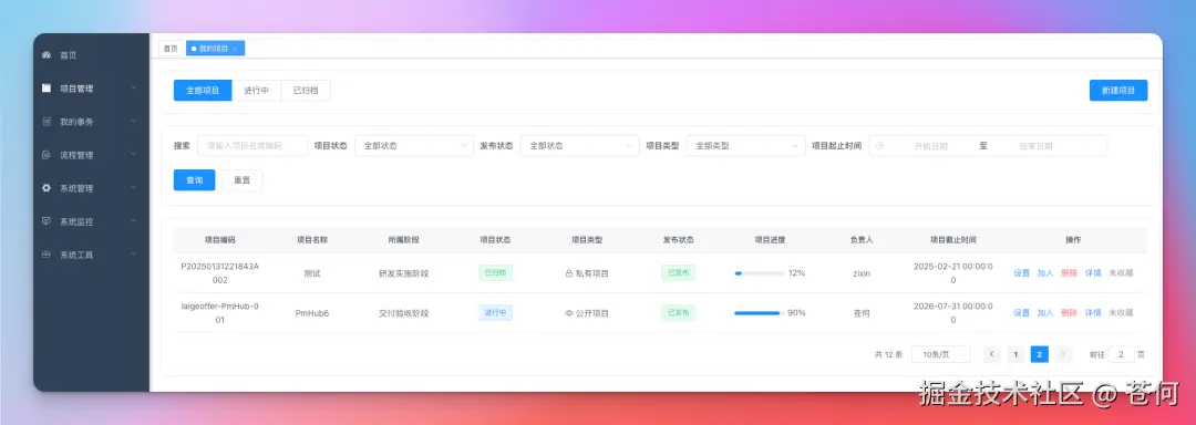 登录进来后就可以看到项目管理功能模块了。