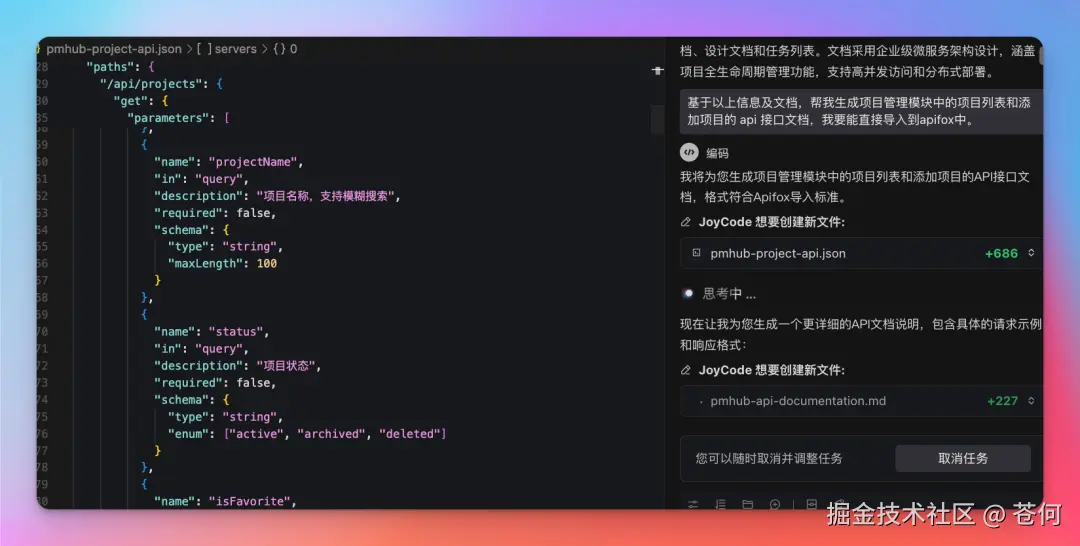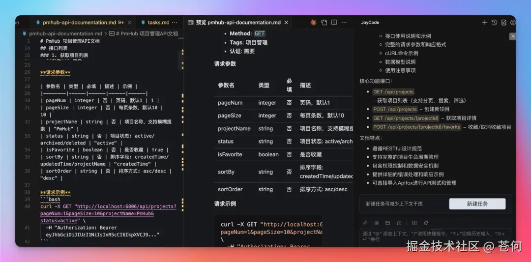 我尝试在 JoyCode 中测试该功能,比如照着我们开源的 PmHub 项目的接口文档,我们尝试做点有意思的事情。