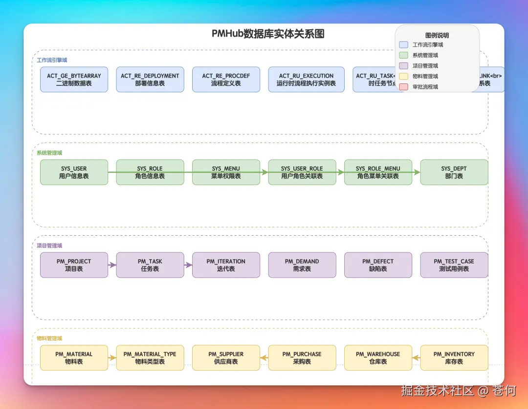 prompt:基于该 sql 文件,生成实体-关系图,并按照业务域对数据库表进行分类