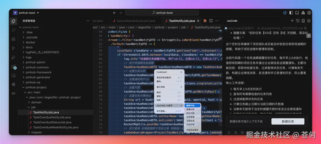 我尝试用 JoyCode 来做这方面的工作,就拿我的真实企业级开源项目 PmHub 来测试吧。