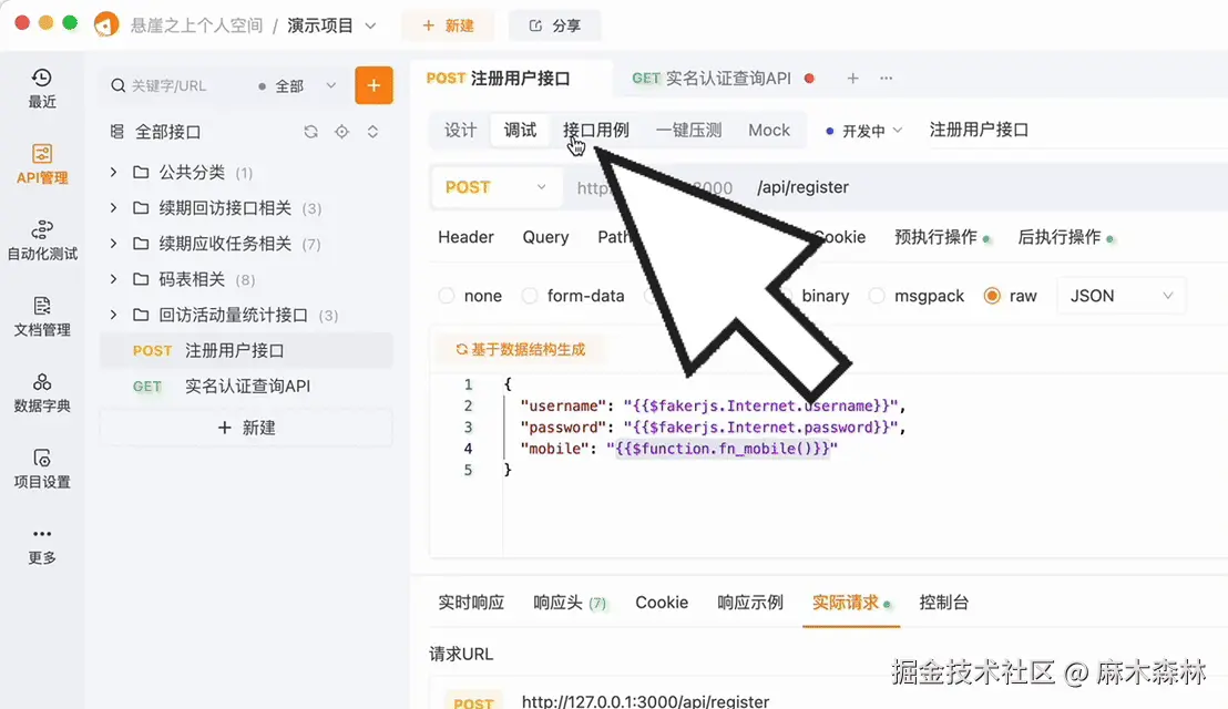 后来小张用Apipost「AI生成测试用例」,输入"会员积分兑换接口,支持普通会员、VIP会员、积分即将过期用户",系统10分钟内生成了包含12个场景的用例,包括: