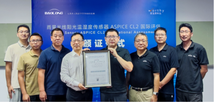 近日,上海保隆工贸有限公司(以下简称保隆科技)雨量光线阳光温湿度传感器(以下简称光雨量传感器)项目正式通过ASPICE CL2国际权威评估。这是保隆科技继TPMS、智能悬架控制器之后,再次通过该评估。保隆科技董事长兼总裁张祖秋出席授证仪式,INTACS认证首席评估师侯亚文为保隆科技颁发证书。这标志着保隆科技的软件开发体系全面接轨国际标准,为拓展全球高端市场奠定关键基石。
