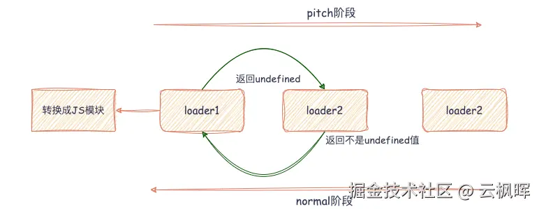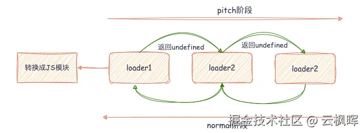 如果某个 Loader 的pitch方法返回了一个非undefined的值,整个流程会立即终止 ,并从当前 Loader 的normal阶段开始 "往回走"。