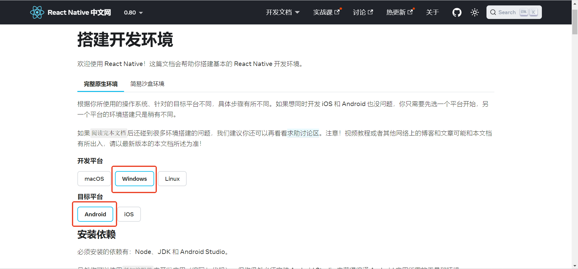 搭建步骤参考:https://reactnative.cn/docs/environment-setup
