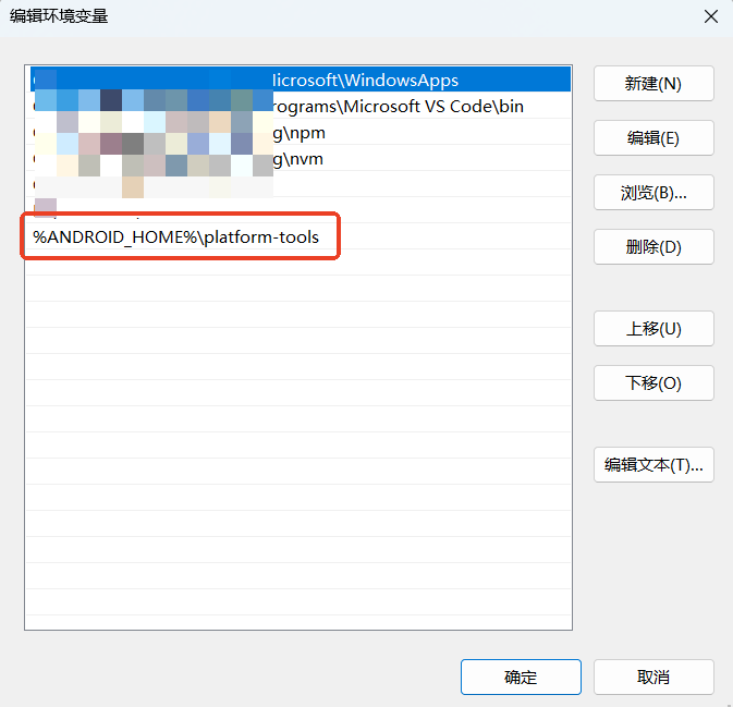 然后再把工具目录添加到path(ANDROID_HOME 在哪个就是哪个path):