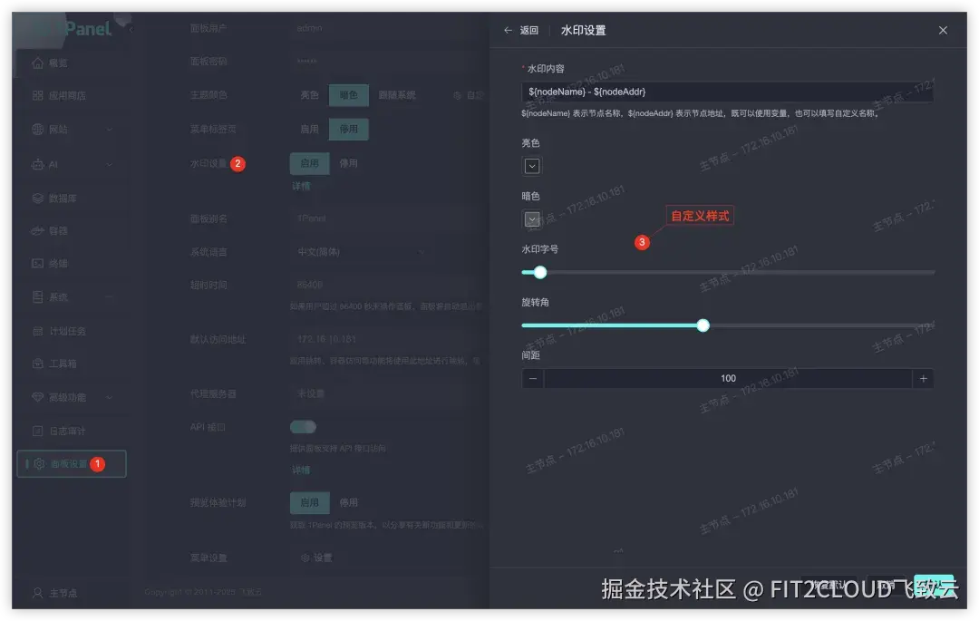 目前水印功能支持设置显示内容、样式、位置及透明度等参数,并且可以使用变量(例如节点名称、IP地址等)动态生成不同节点的专属水印文案。这一功能既能帮助用户在多节点或多环境管理时快速区分面板来源,又能在安全与标识层面提供更为直观的识别方式,使得管理体验更加专业和个性化。