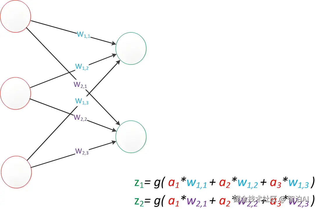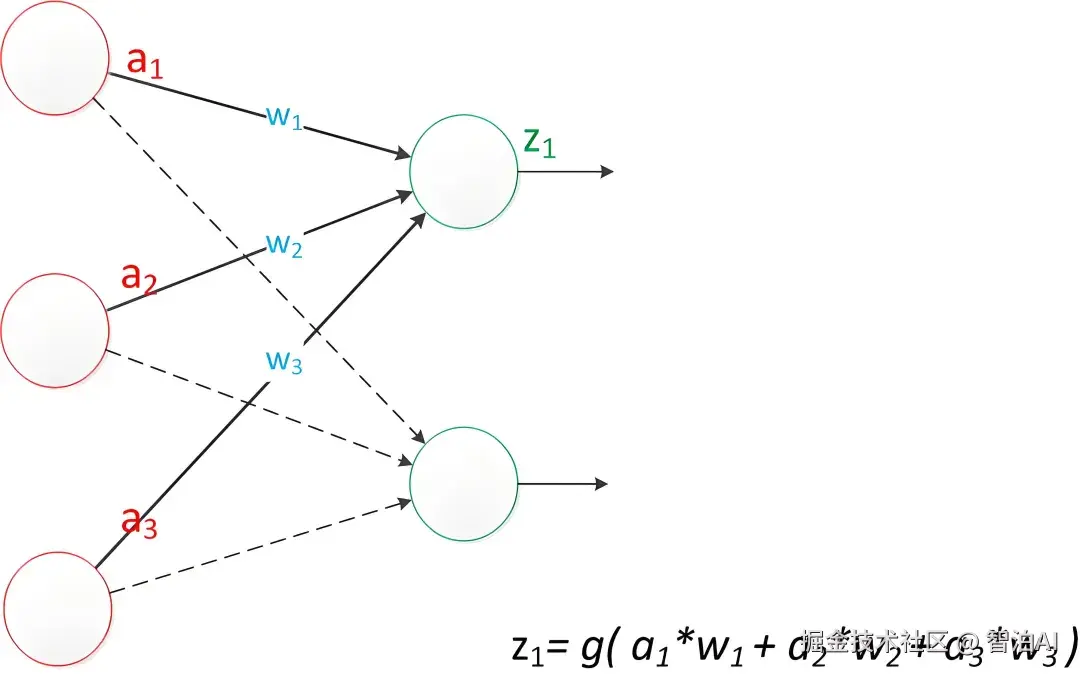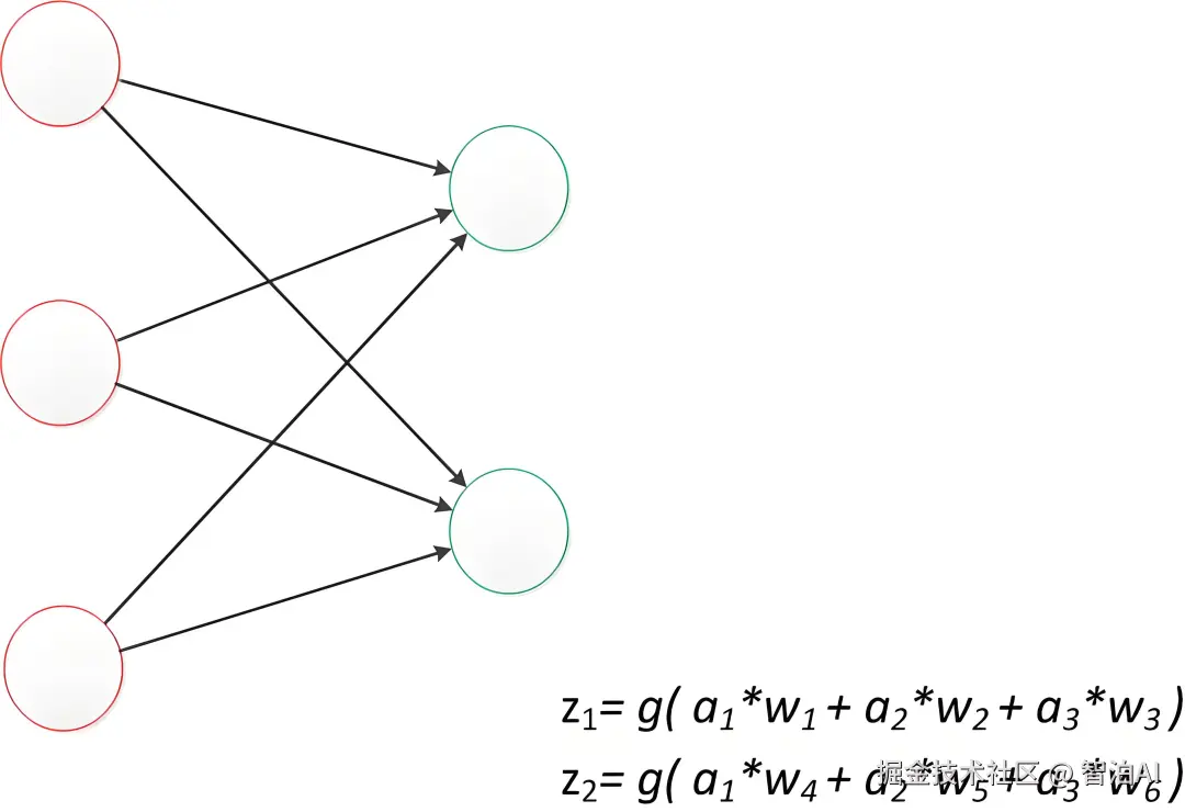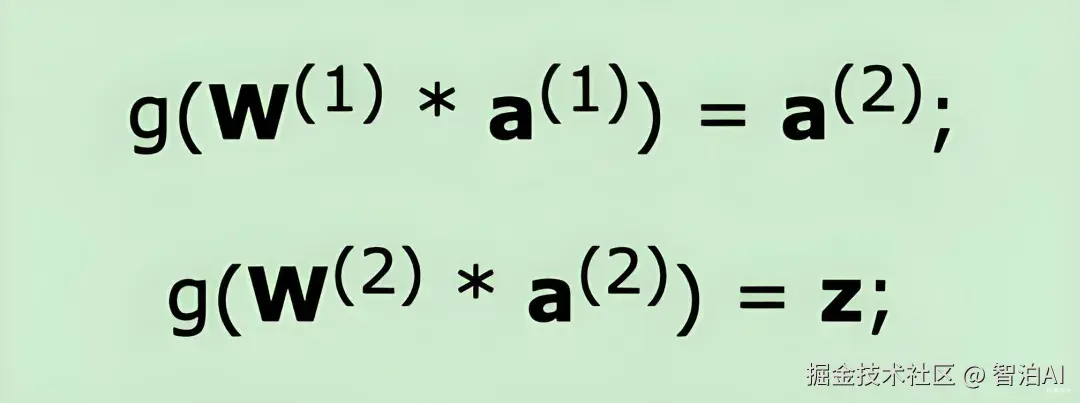 于是,输出公式可以改写成:g(W * a) = z;