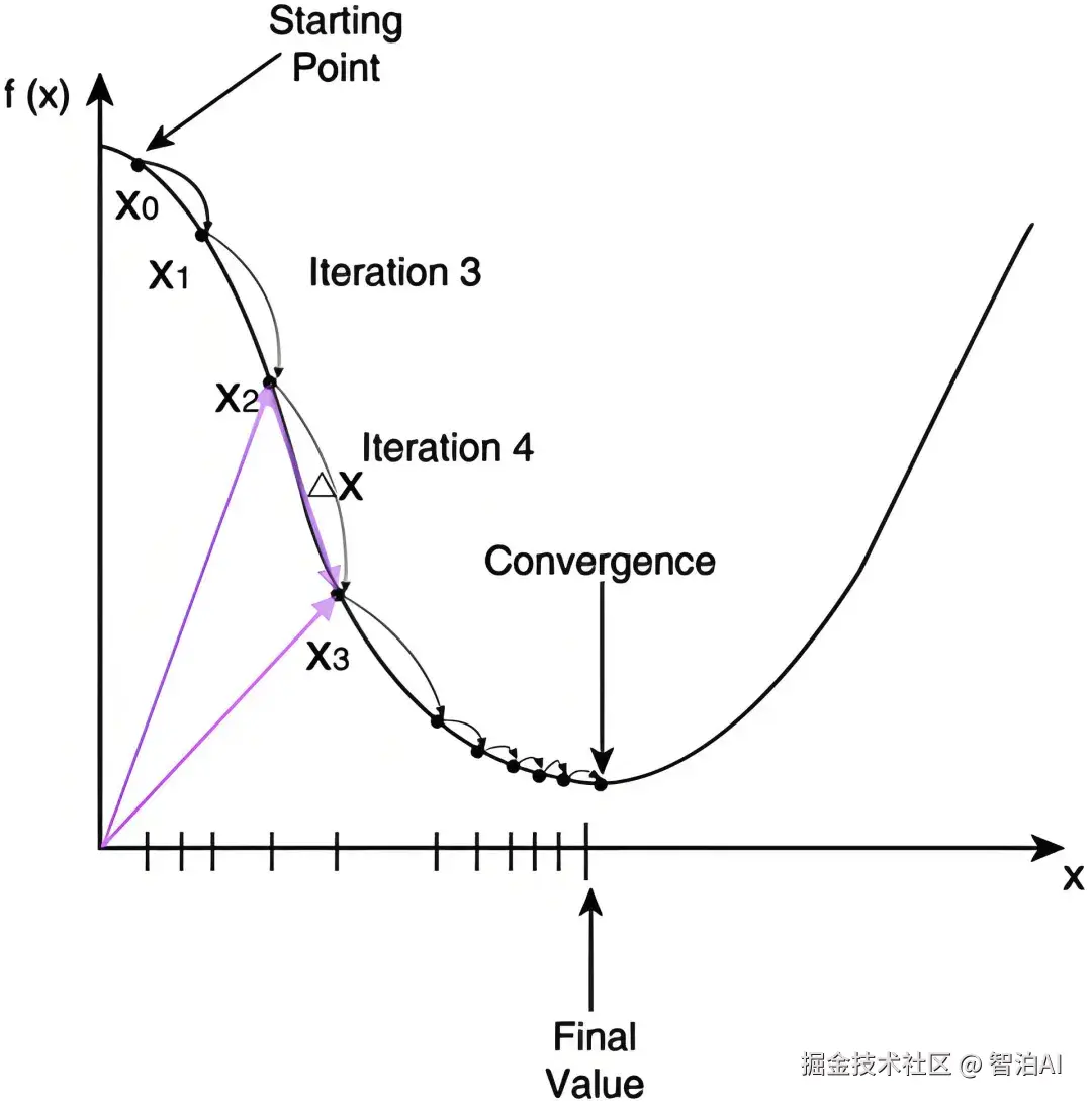 方向选择:计算损失函数对参数的梯度(即函数值变化最快的方向),并沿其负方向更新参数。由于梯度指向函数上升最快的方向,反方向自然对应下降最快的路径。