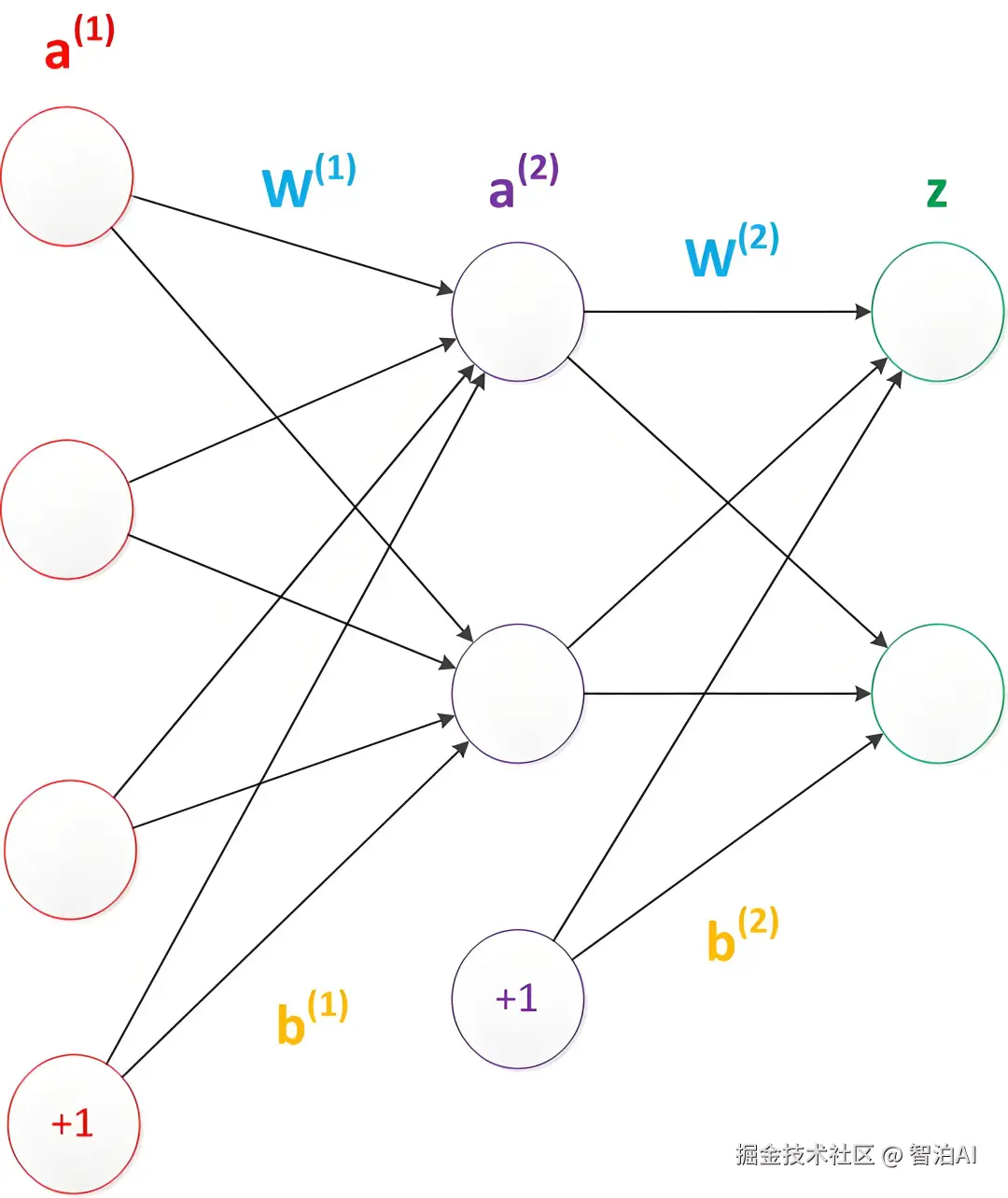 偏置项 b:一个与输入无关的常数项,用于调整输出值。在神经网络中,偏置项也是通过训练过程调整的参数之一。