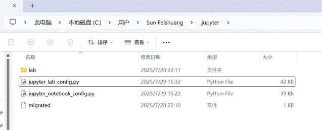 修改文件存放的路径可以去配置文件中修改。这里配置文件是一个 .py 文件, 配置文件并不是你写的代码文件,更可以理解为对Jupyter Notebook的各种设置。这里,我们可以在配置文件中将文件存放路径修改为自己指定的位置,也让启动界面更清爽。