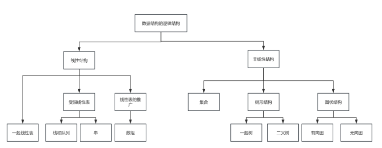逻辑结构是指数据元素之间的逻辑关系,即从逻辑关系上描述数据。逻辑结构分为线性结构 和非线性结构 。