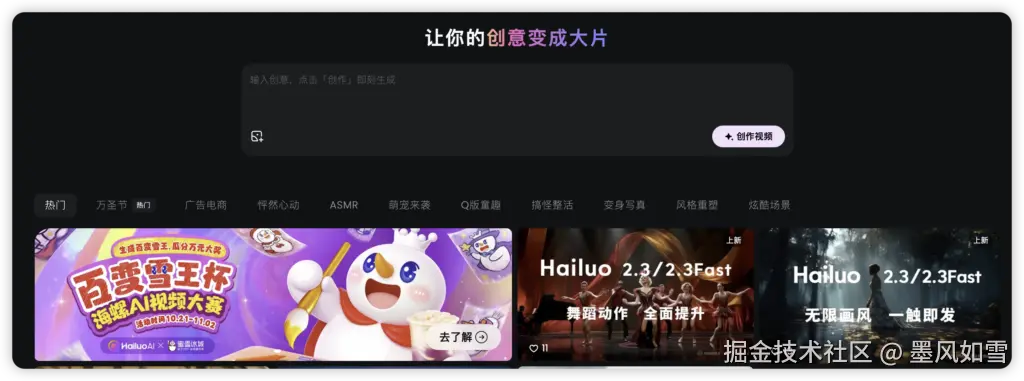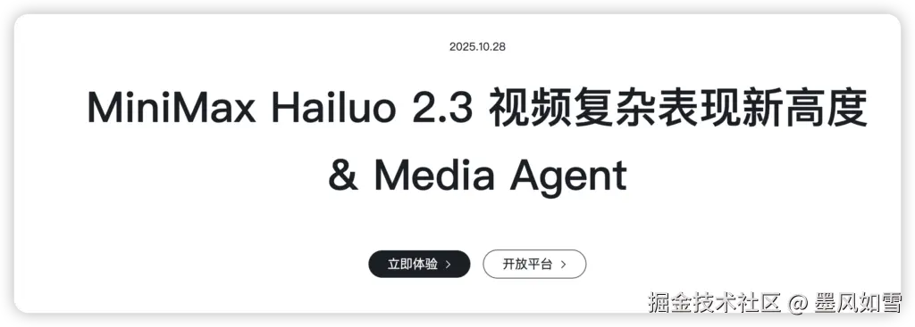 那一天终于来了。当我在屏幕前目睹MiniMax(稀宇极智)正式发布其新一代视频生成模型------"海螺AI(Hailuo)2.3"时,脑海中盘旋的第一个念头是:我们可能真的站在了AI视频生成技术的一个全新拐点上。它不仅仅是一次常规的版本迭代,更像是一场对现有视频创作边界的彻底拓宽,甚至,是颠覆。