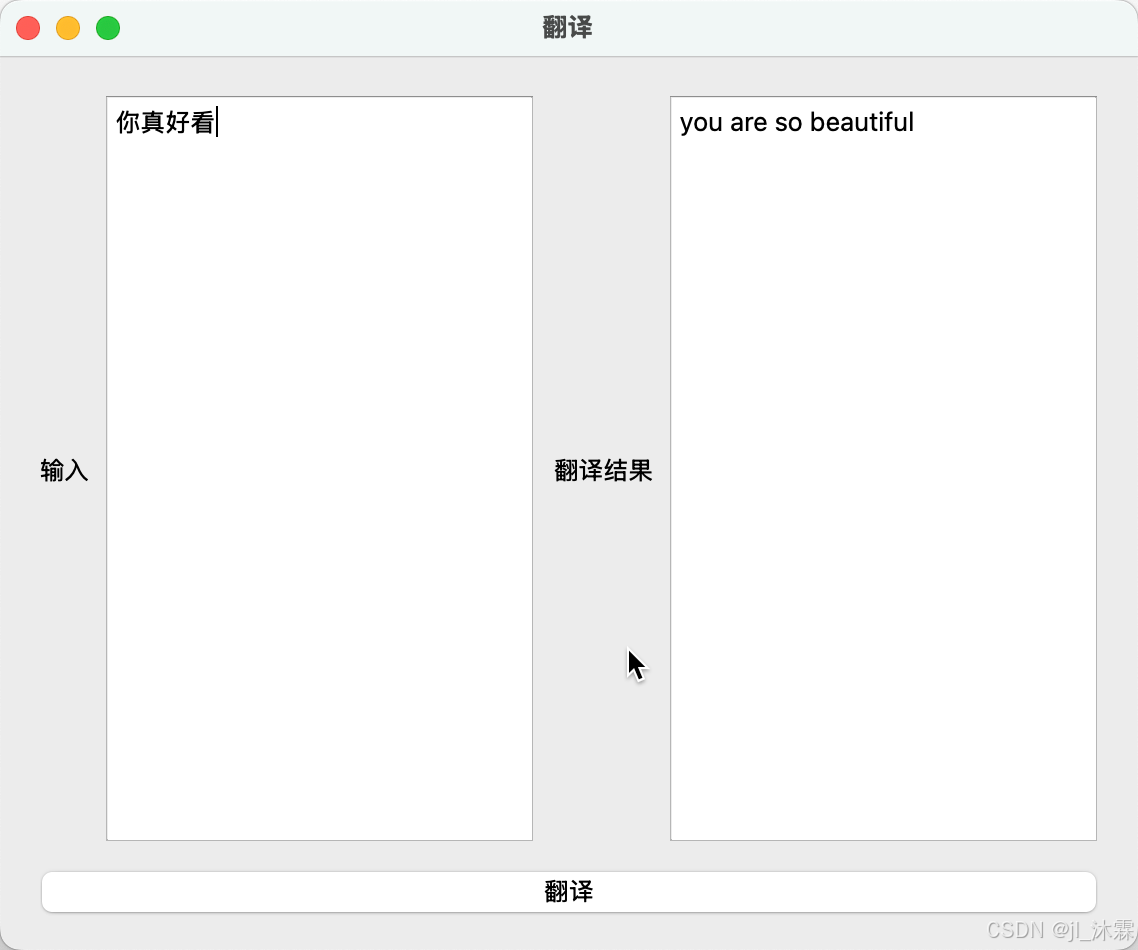 界面如下图,包含输入和输出窗口,支持中译英,英译中