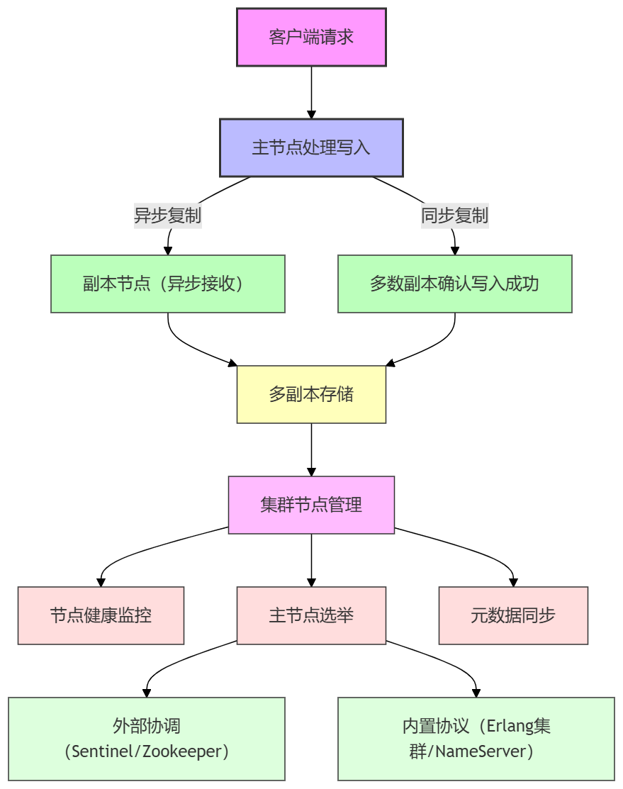 - 节点管理确保分区容错:主节点选举和脑裂防护是高可用集群核心,节点监控和元数据管理保证集群稳定。