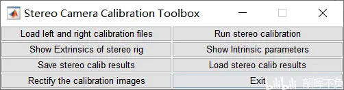 (3)点击第一个按钮" Load left and right calibration files"。窗口提示输入左右标定文件名,分别先后输入对应文件名 Calib_Results_left.mat、Calib_Results_right.mat。
