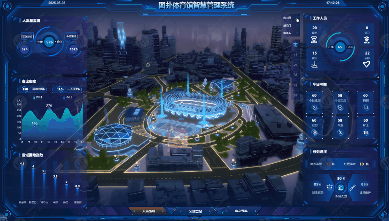 体育馆日常运营与赛事保障中,热力图实时呈现人流密度(含上座率、出入口拥堵、运动区使用情况),运营方借此调安保、优服务布局、辅疏散规划,兼顾观赛体验与运营安全高效。
