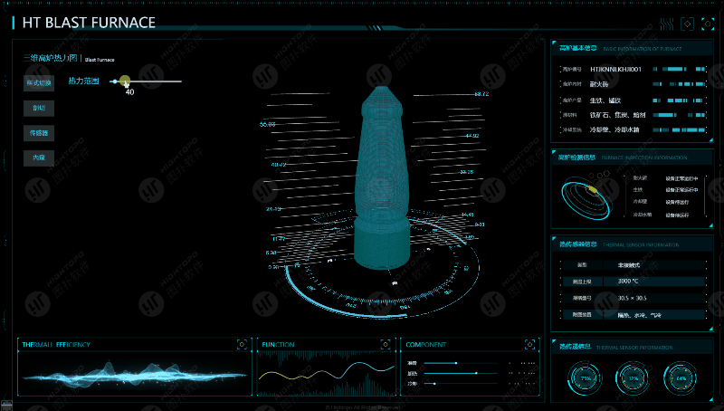 在钢铁行业高炉数字孪生场景中,热力图是监测高炉稳定运行的关键工具。