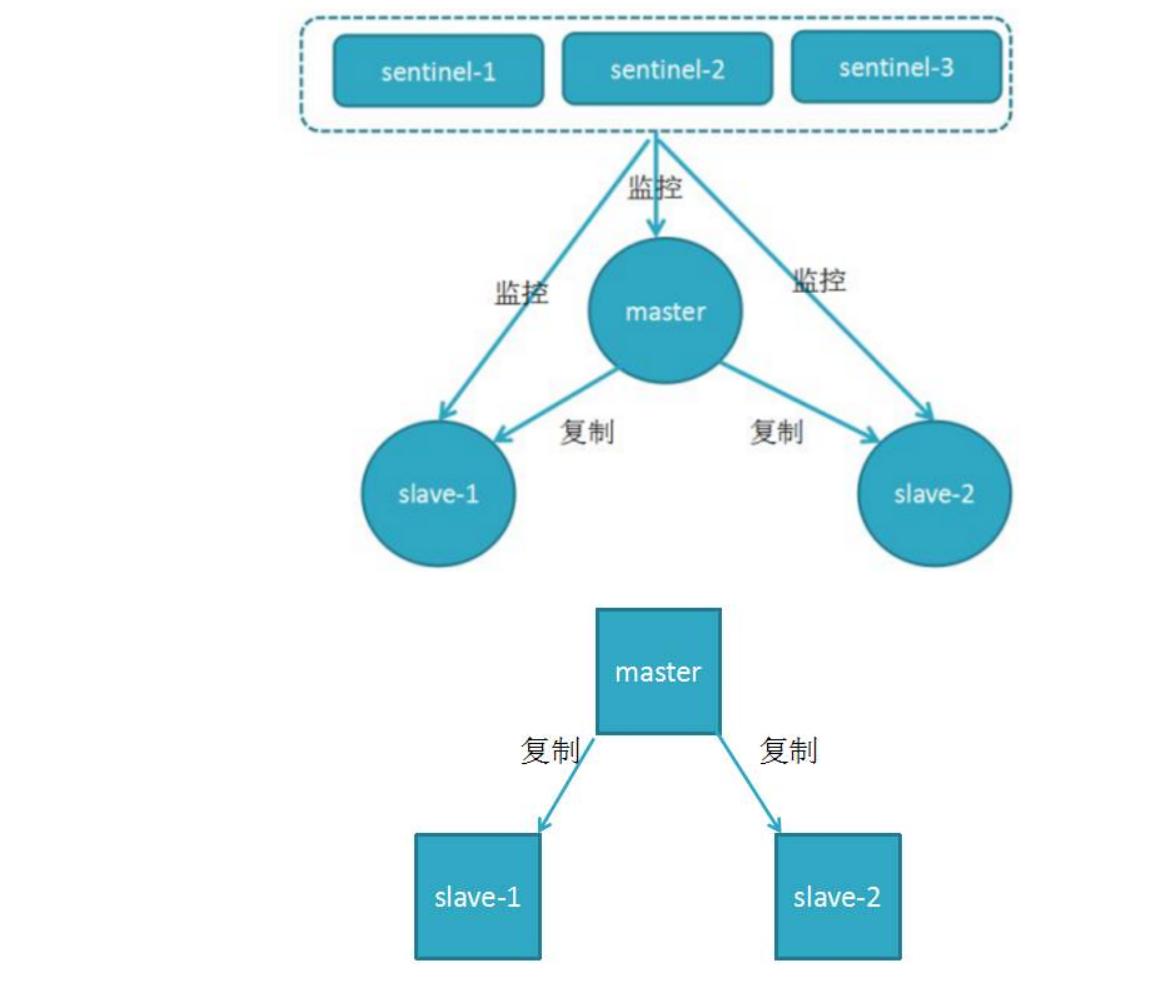 主节点出现故障,此时两个从节点与主节点失去连接,主从复制失败