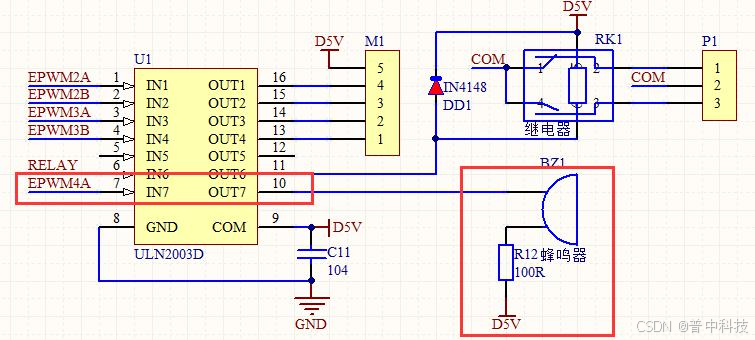 我们 PZ-DSP28335-L 开发板上的蜂鸣器模块电路如下图所示: