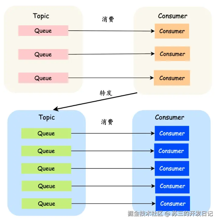 - 消息转发:根据路由规则将消息转发给消费者。