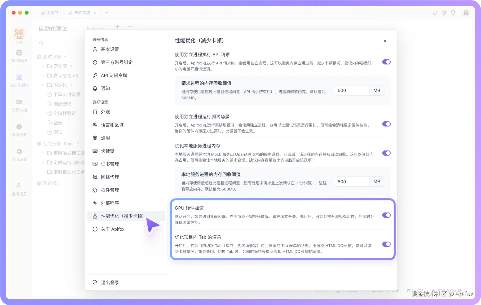 「性能优化」中新增了「优化项目内标签页渲染」选项,开启后能有效解决打开大量 Tab 时出现的卡顿问题,提升多标签场景下的性能表现,带来更顺畅的操作体验。