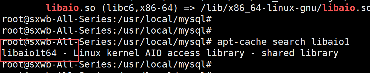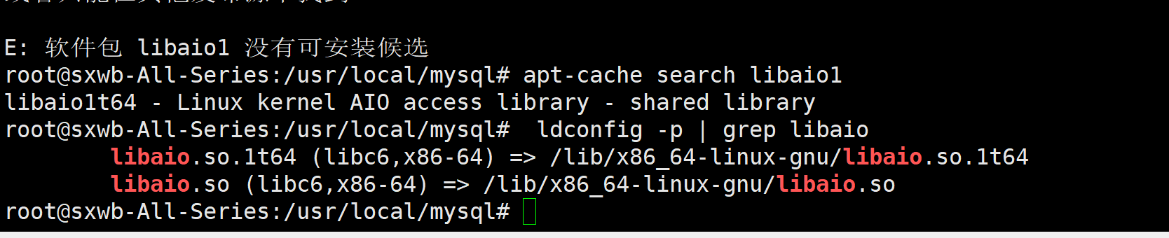 root@sxwb-All-Series:/usr/local/mysql# apt-cache search libaio1