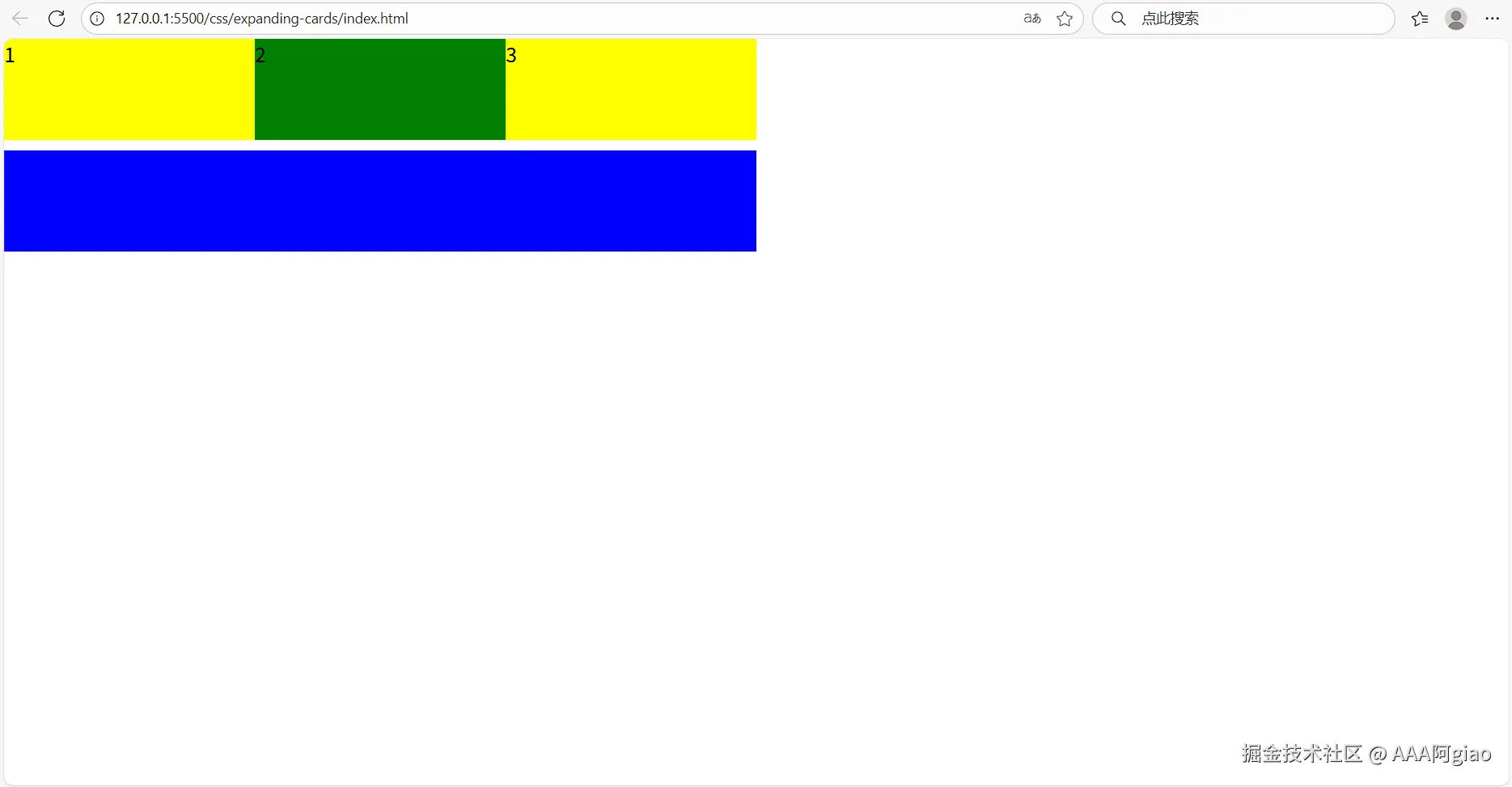 1,2,3在绿色盒子中完美等分,没有缝隙! - 蓝色盒子虽然为空,但也占位显示。